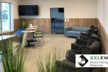 Das Parkgelände von XXLKW Secure Parking Elbebrücke bietet Lkw-Parken auf höchstem Niveau: Die neuen und sauberen Sozialräume (mit mehrfacher täglicher Reinigung) laden zum Entspannen während des Feierabends ein. Eine bequeme und moderne Ausstattung mit TV und genügend Steckdosen, als auch Koch-, Spül- und Waschmöglichkeiten sind vorhanden. Zudem steht für alle Parkenden schnelles, kostenloses WiFi zur Verfügung auf