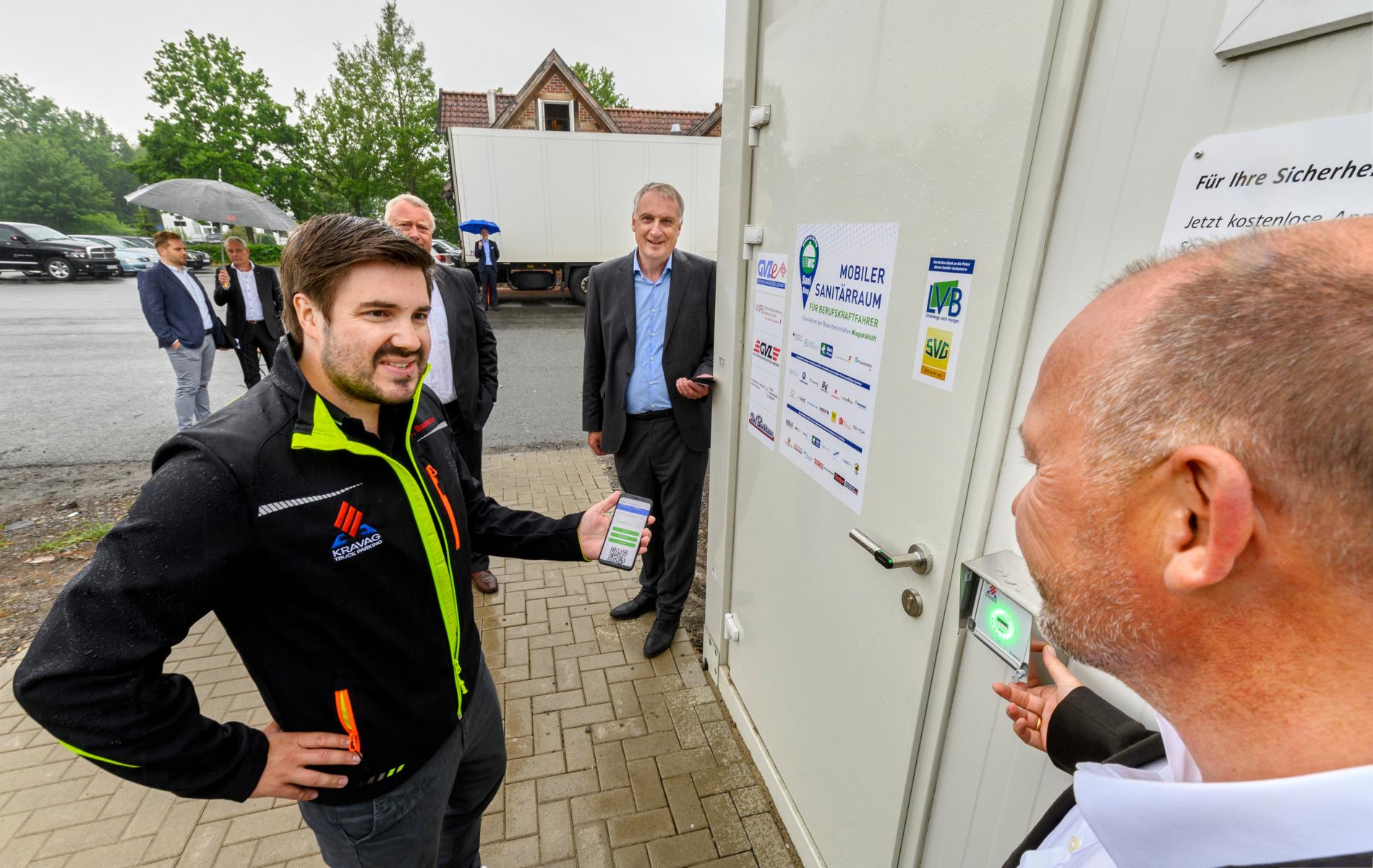 Unsere vielleicht wichtigste Reaktion auf die Corona-Lage war die Unterstützung der Aktion #LogistikHilft. Mitten im ersten Lockdown und damit den letzten Zügen unserer App-Entwicklung schlossen sich hier führende Unternehmen aus der Logistik mit dem Bundesverkehrsministerium sowie Verbänden wie dem BGL zusammen, um Fernfahrern neue Angebote im Bereich der sanitären Anlagen zu machen. Das Angebot der buchbaren Parkplätze im KRAVAG Truck Parking Netzwerk wird durch die Sanitärcontainer der Aktion #LogistikHilft perfekt ergänzt. Aktuell werden sechs Standorte durch private Initiativen betrieben. 19 weitere Standorte werden durch Bund und Länder entlang der Autobahnen bewirtschaftet.