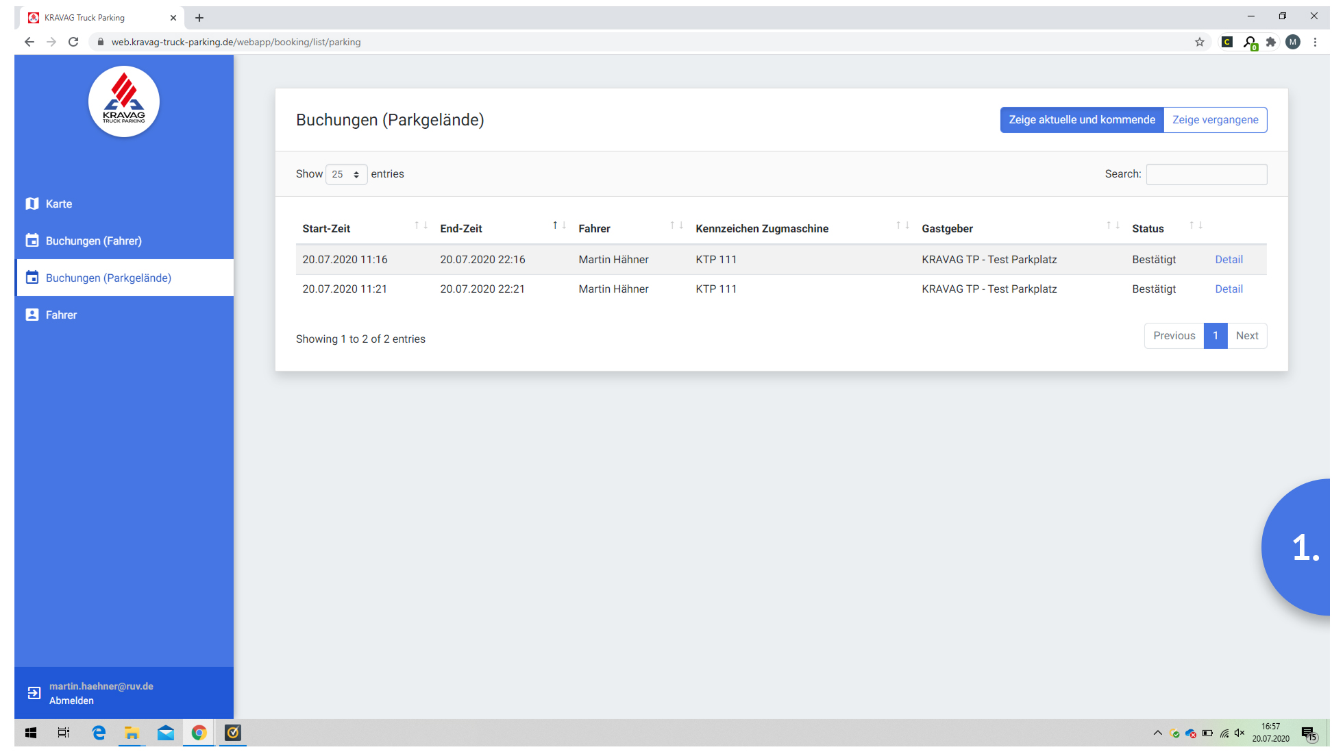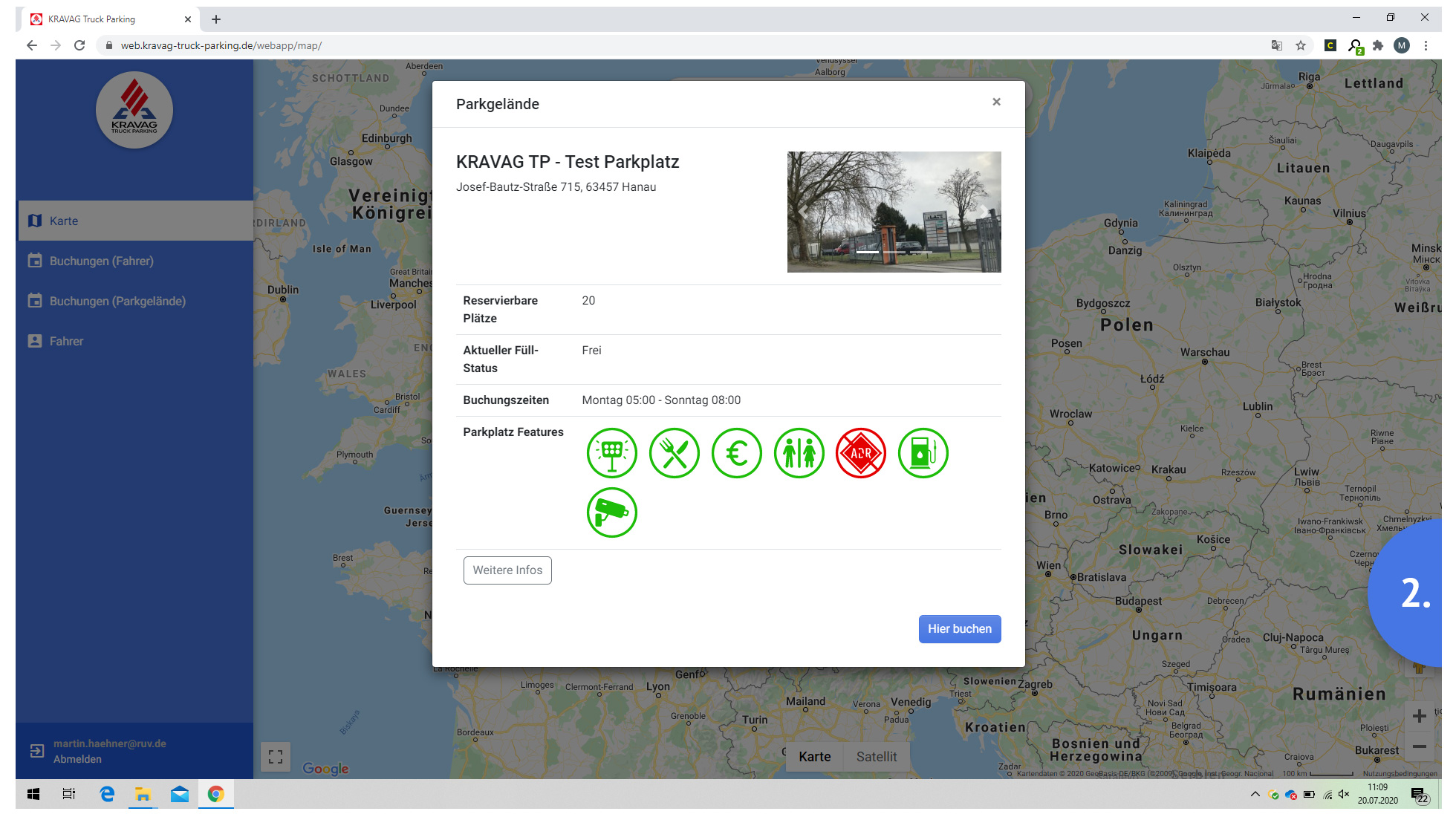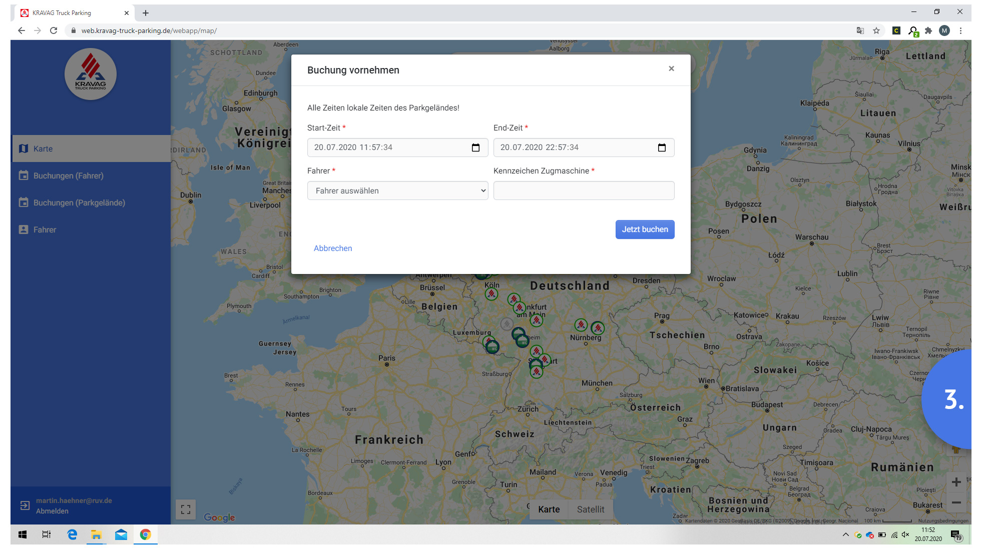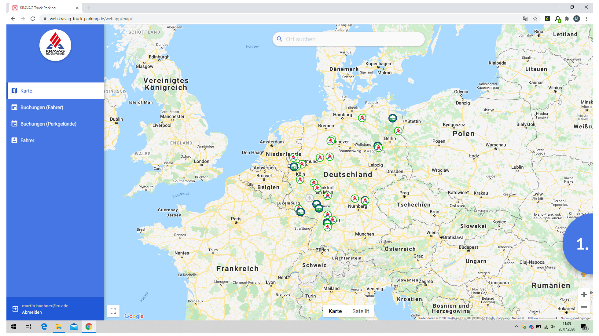 Die Web App erreichen Sie unter https://web.kravag-truck-parking.de