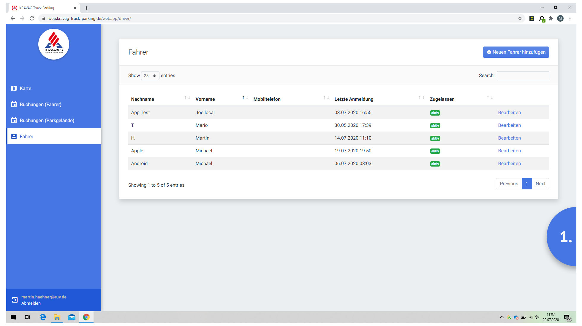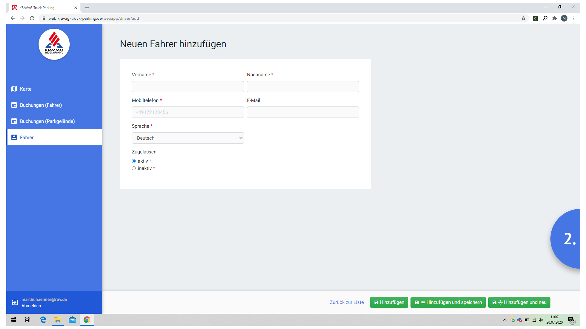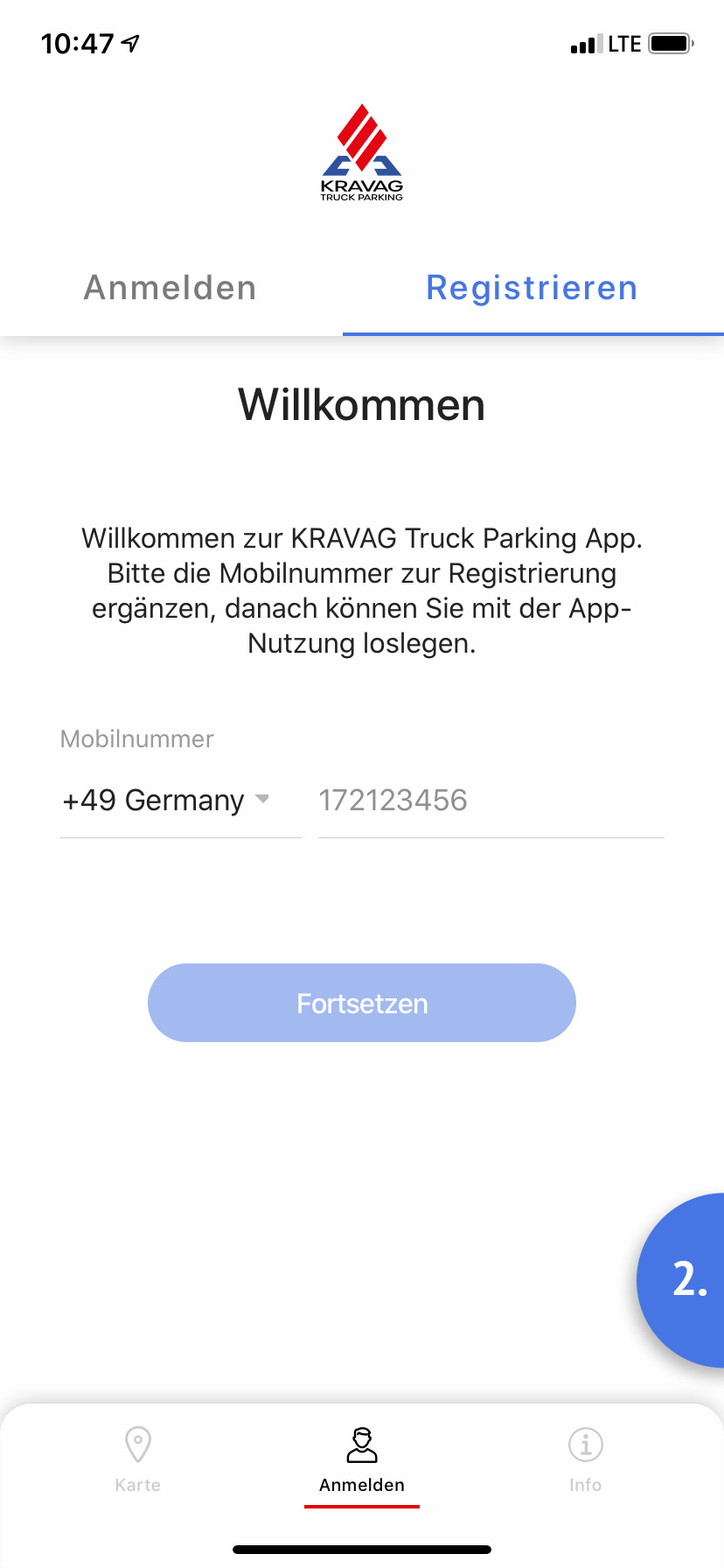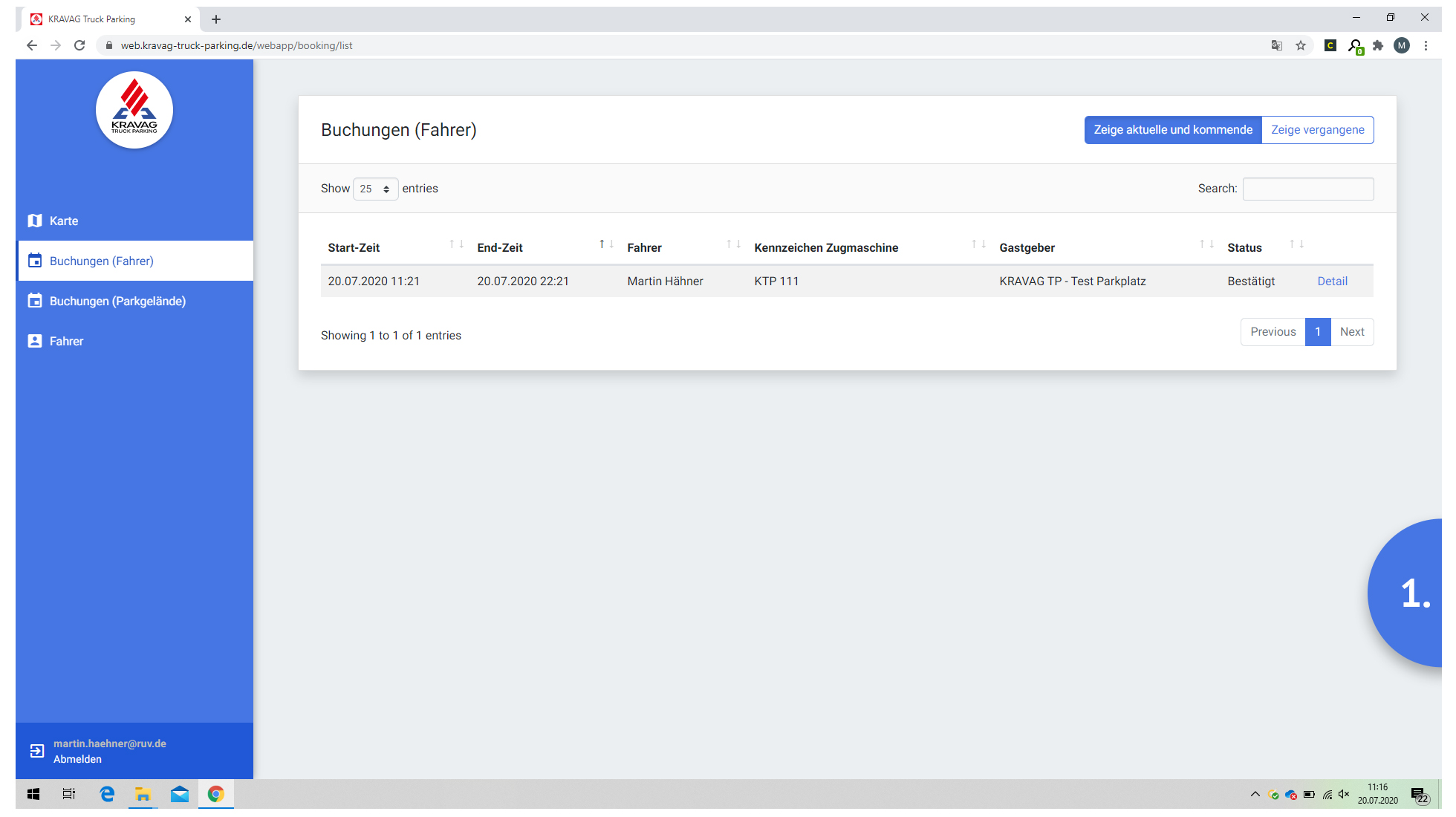 Die Web App erreichen Sie unter https://web.kravag-truck-parking.de